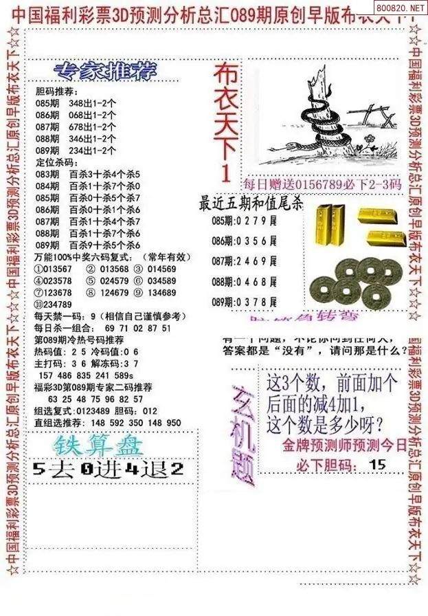 布衣图089期布衣定位杀+布衣神算图迷