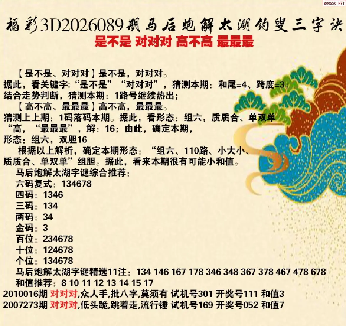 15 26年089期[阿郎赫赫]解3d太湖字谜
