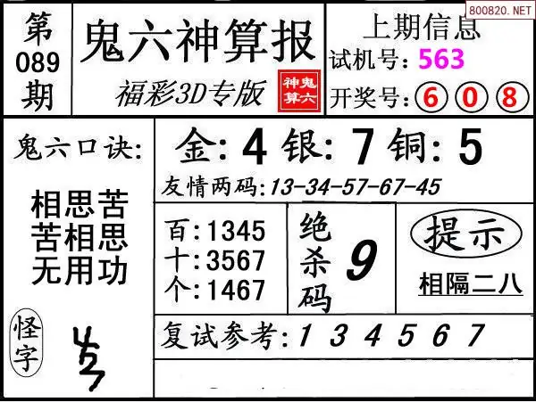 鬼六图26089期鬼六神算报+鬼六胆码图迷
