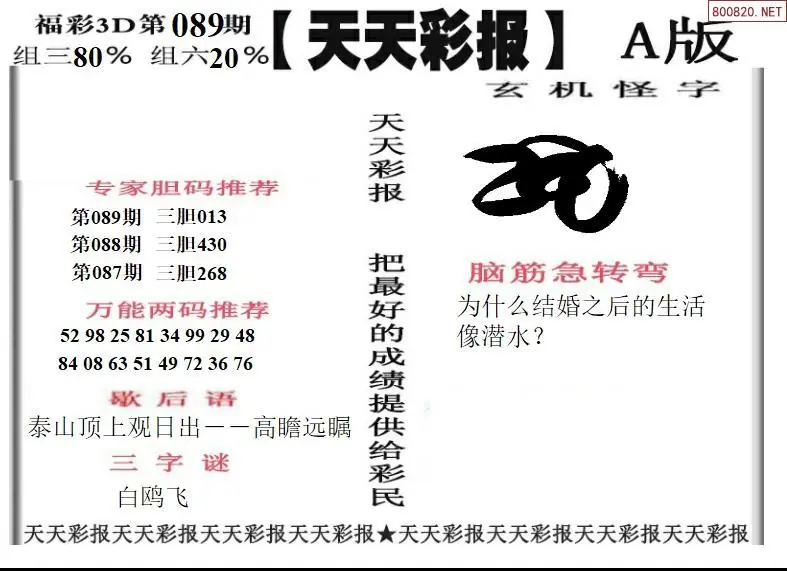 26089期福彩3D天天彩报A版 天天彩报B版