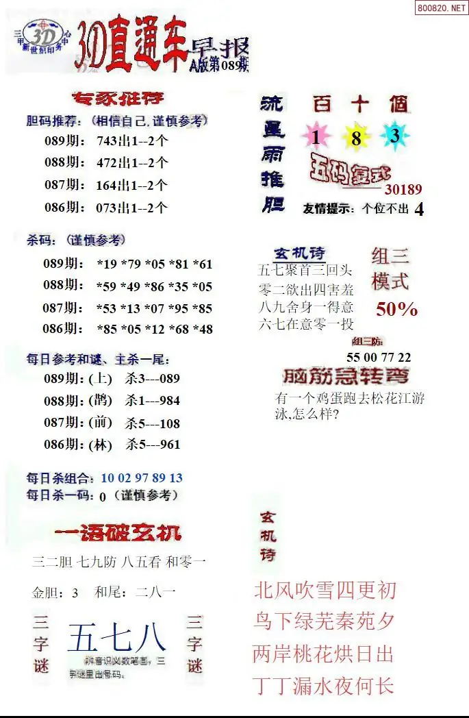 26年089期福彩3D直通车早报ABCD版