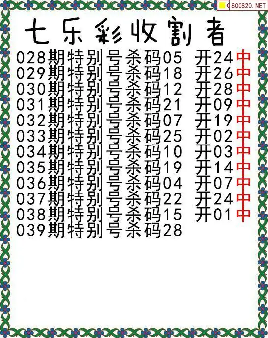 3 七乐彩26年039期收割者特别号杀码