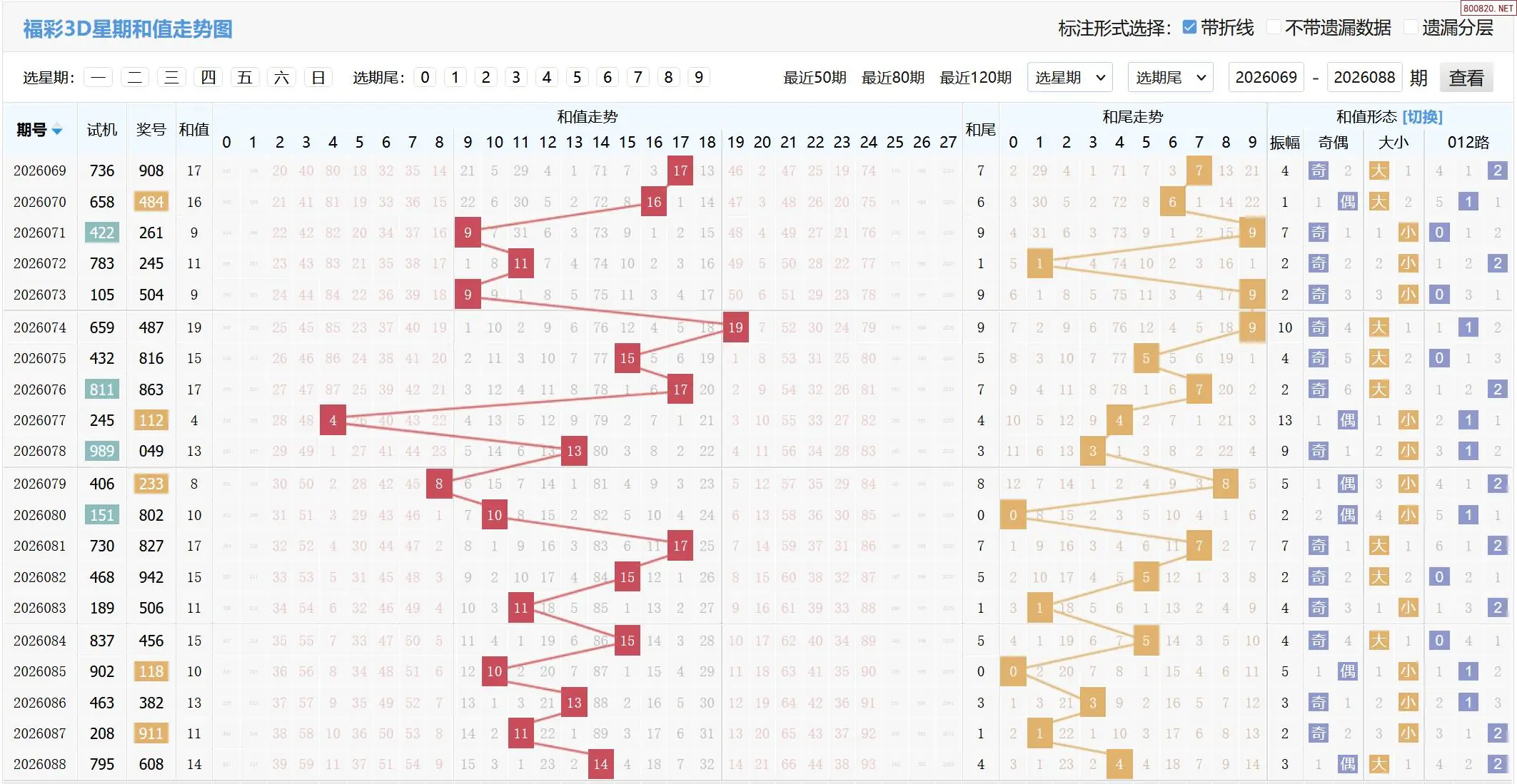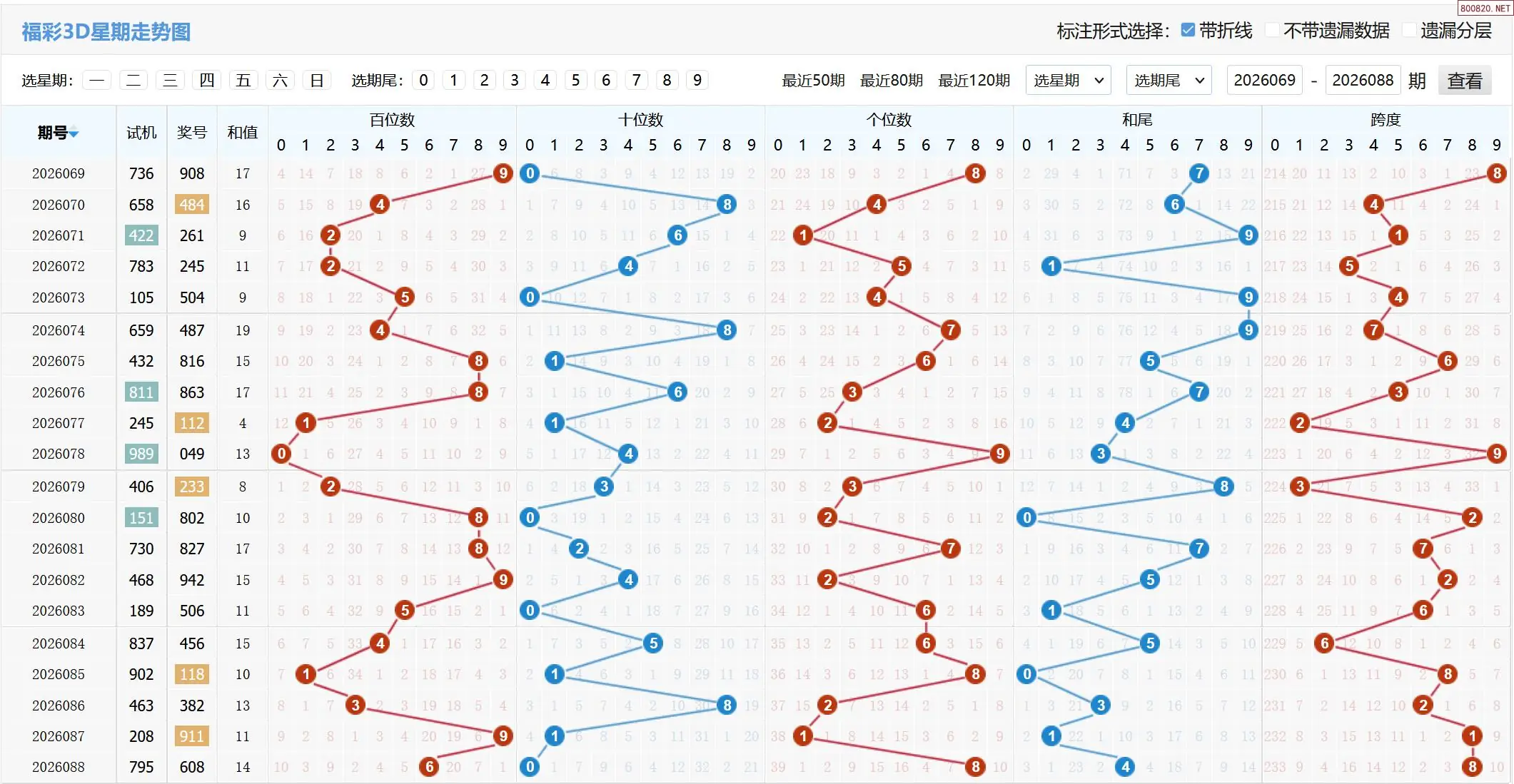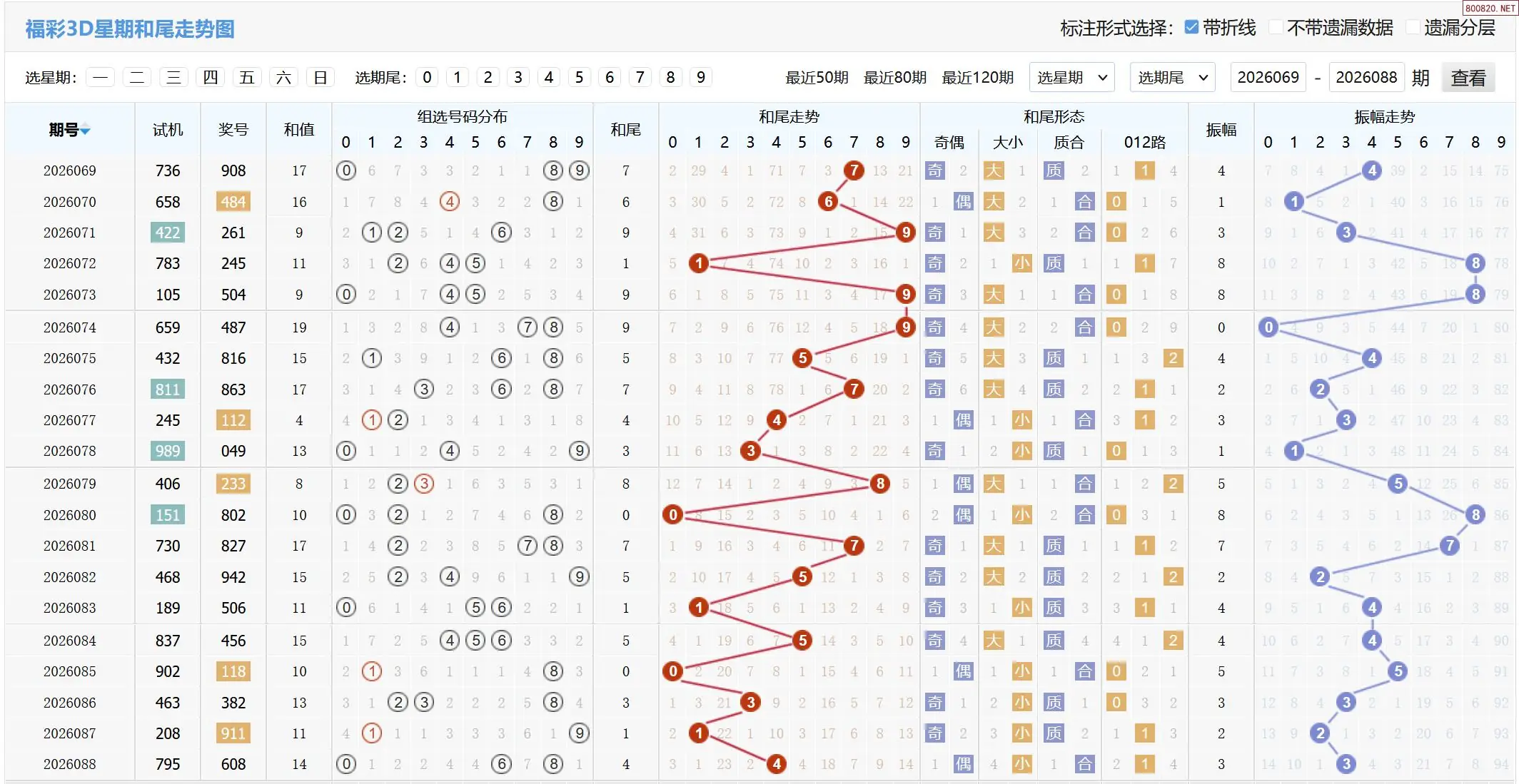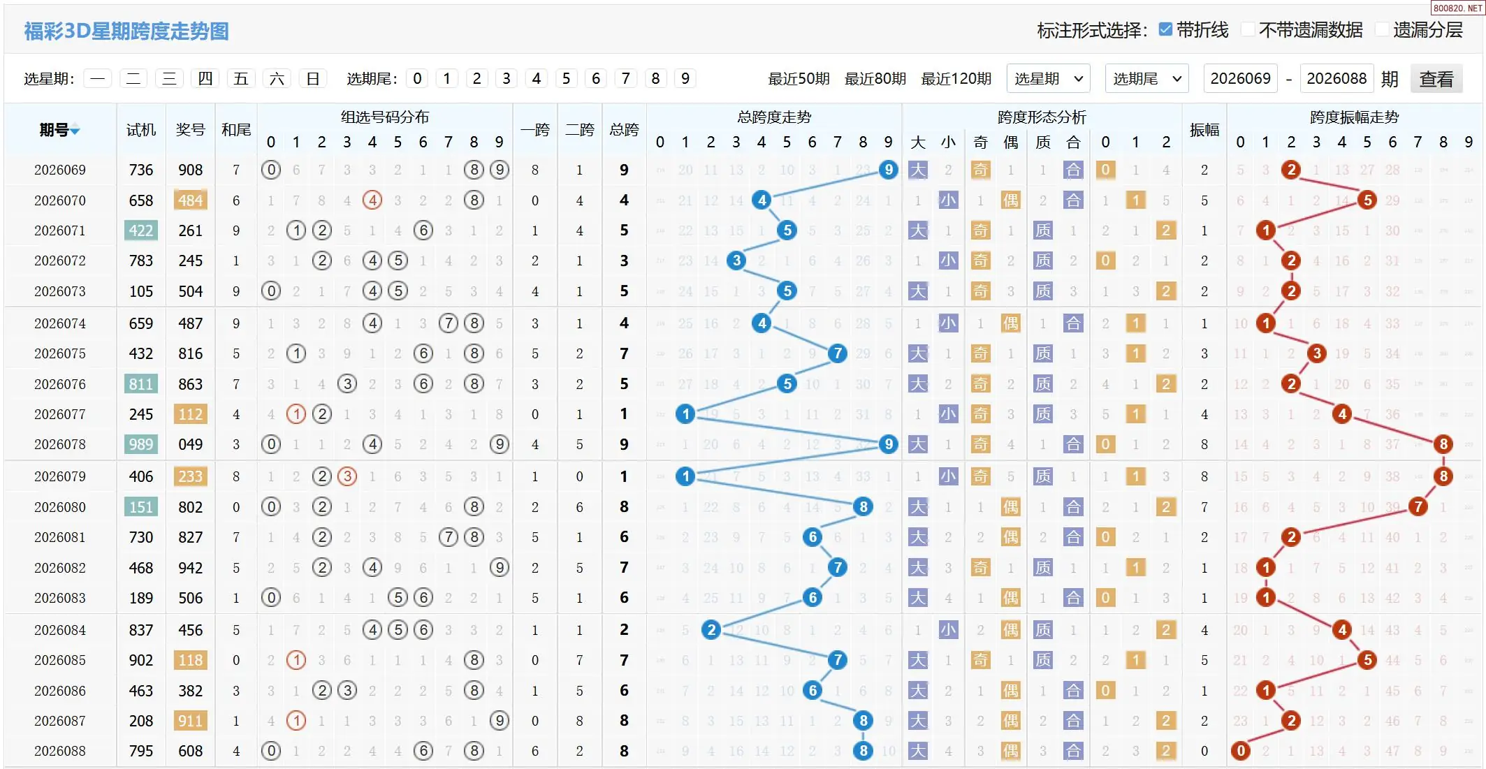 2026089期福彩3D基本走势图如下:
