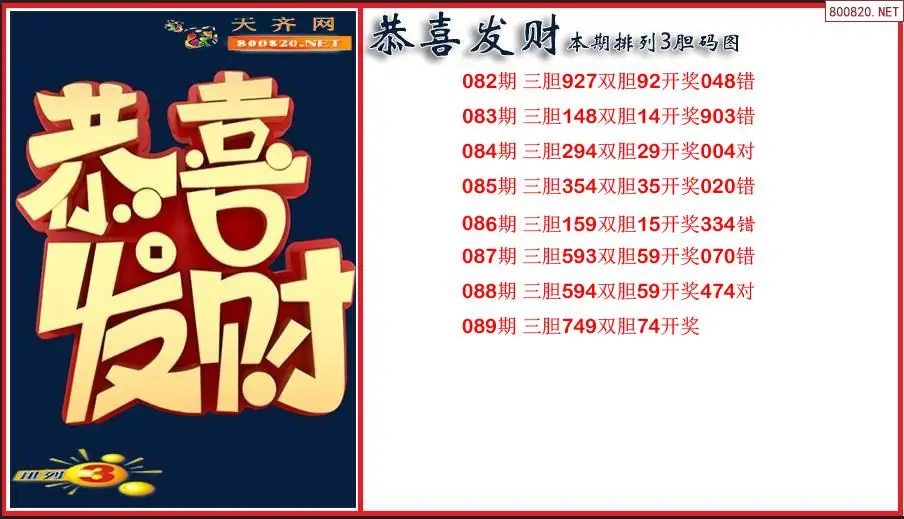 恭喜发财2026089期本期排列3胆码图(原创)