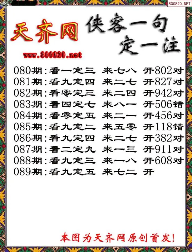 089期侠客一句3D定三码字图谜