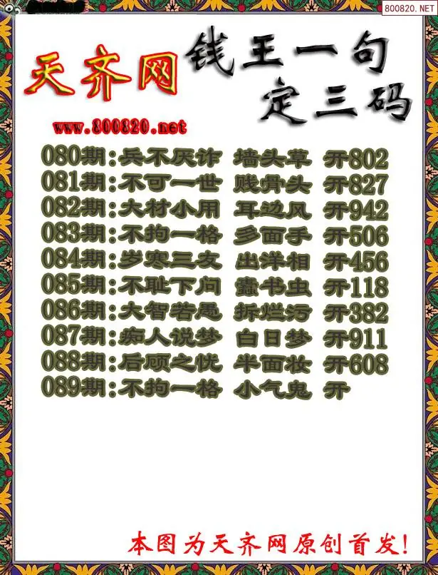 089期钱王3D一句定三码字图谜
