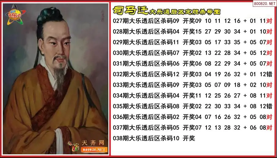 司马迁2026038期大乐透后区定胆杀号图-原创