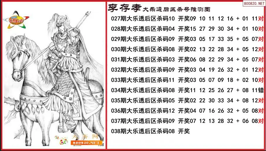 李存孝2026038期大乐透后区杀号推测图-原创