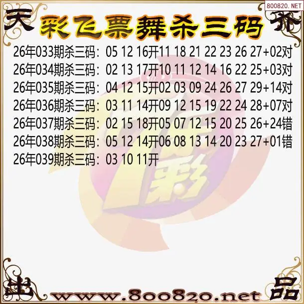 彩飞票舞26年039期七乐彩杀号图谜