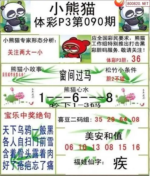 26090期体彩P3小熊猫图迷