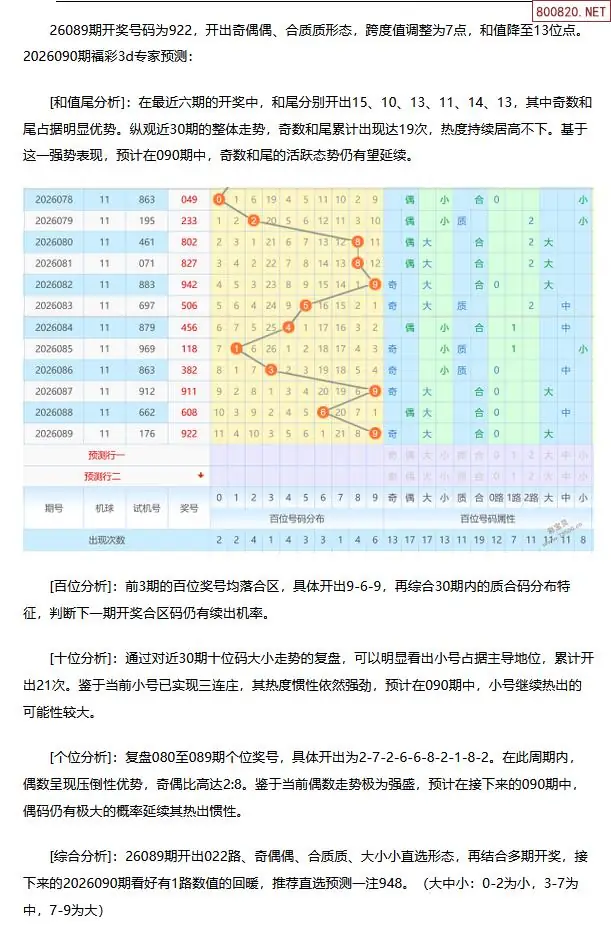 福彩3D第2026090期[玩彩高手]最准最新3d号码预测