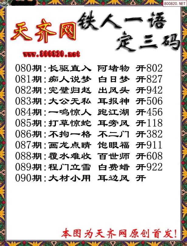 090期3D铁人一句定三码字图谜