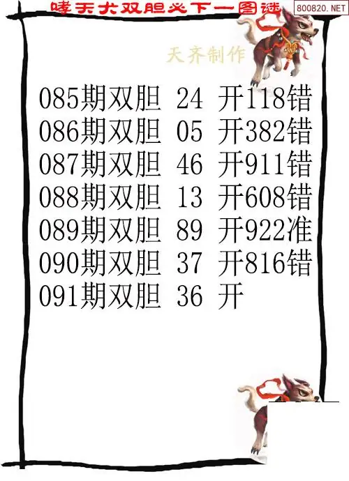 26091期哮天犬福彩3d胆码图-天齐原创