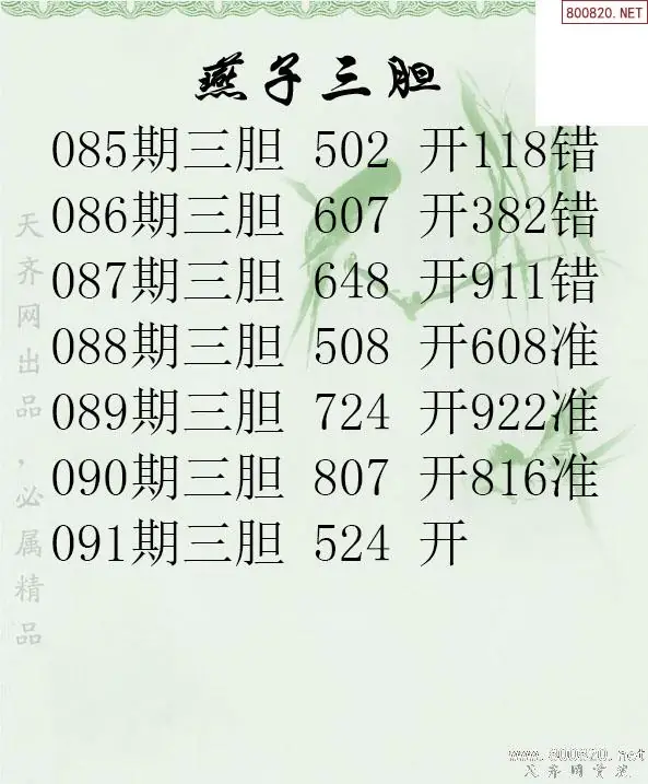 26091期燕子三胆3d胆码图谜-天齐原创