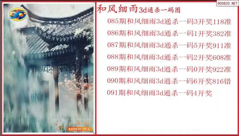 和风细雨2026091期3D通杀一码图(原创)