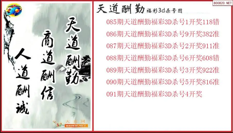 天道酬勤2026091期福彩3d杀号图(原创)