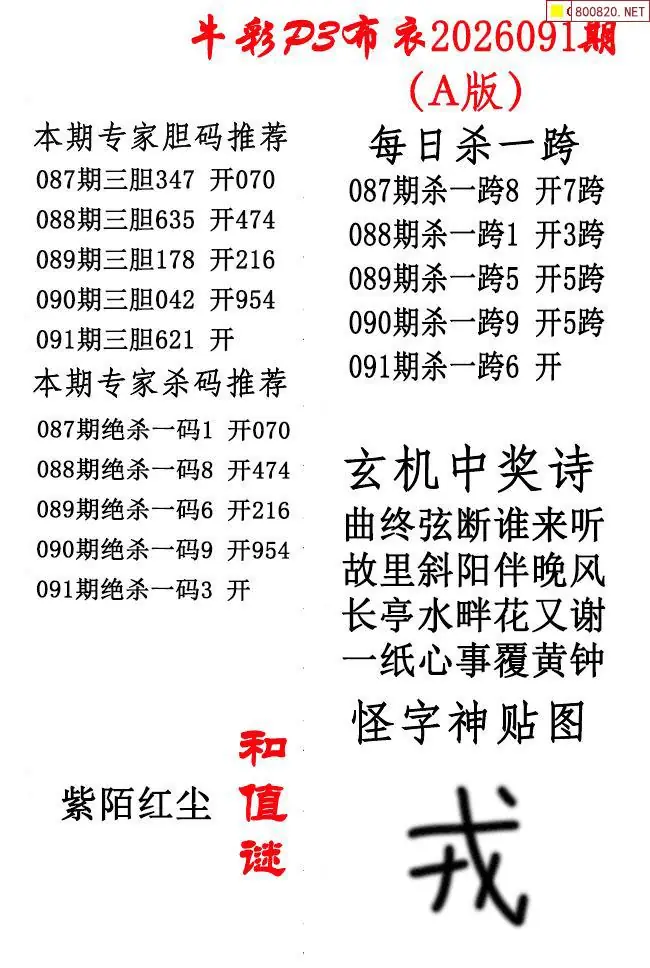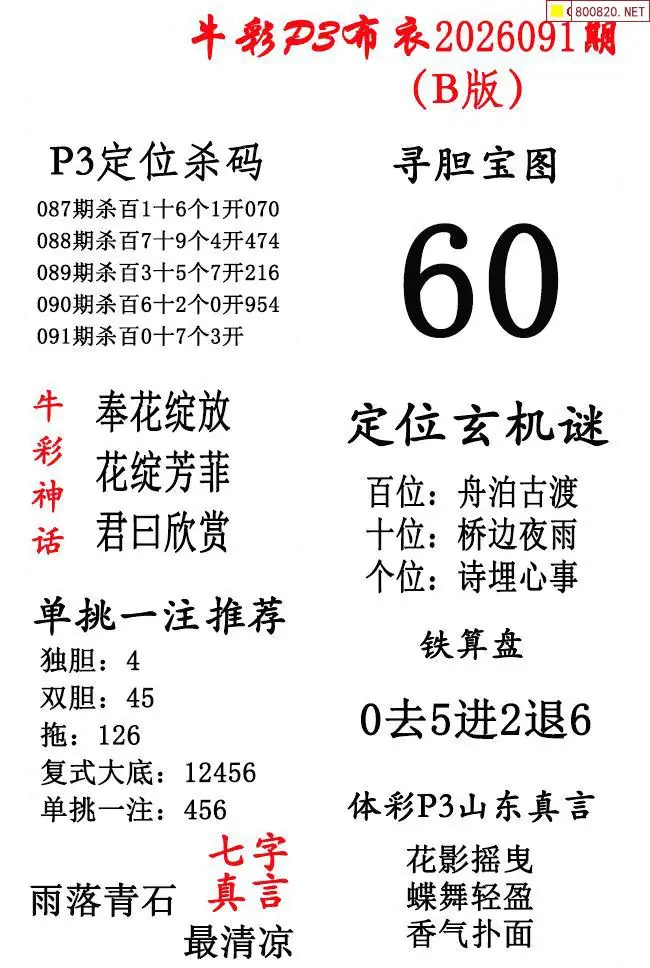 牛彩体彩P3布衣2026年091期AB版图谜(精华版)