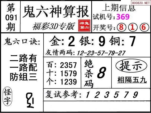 鬼六图26091期鬼六神算报+鬼六胆码图迷