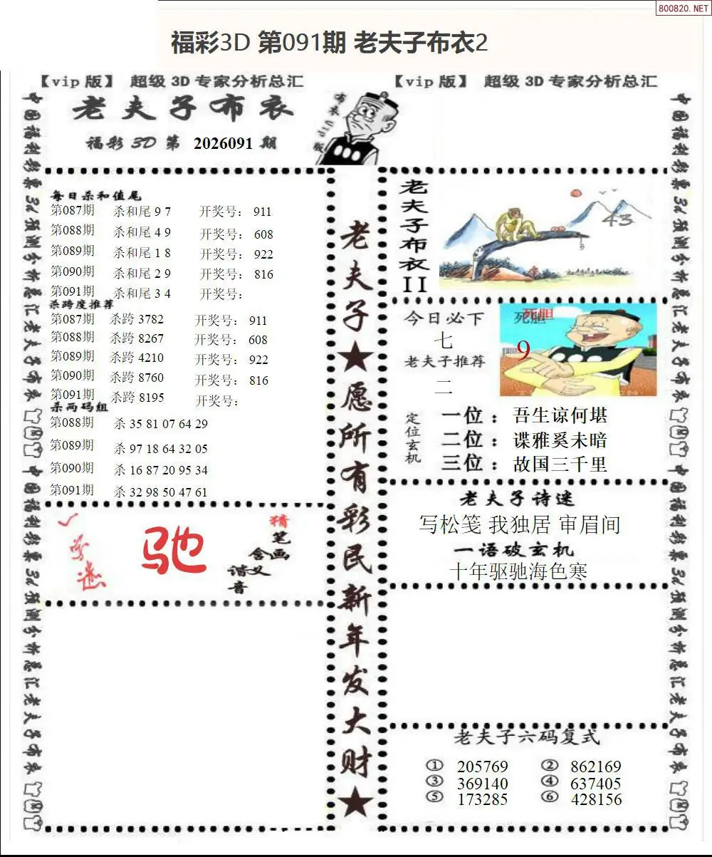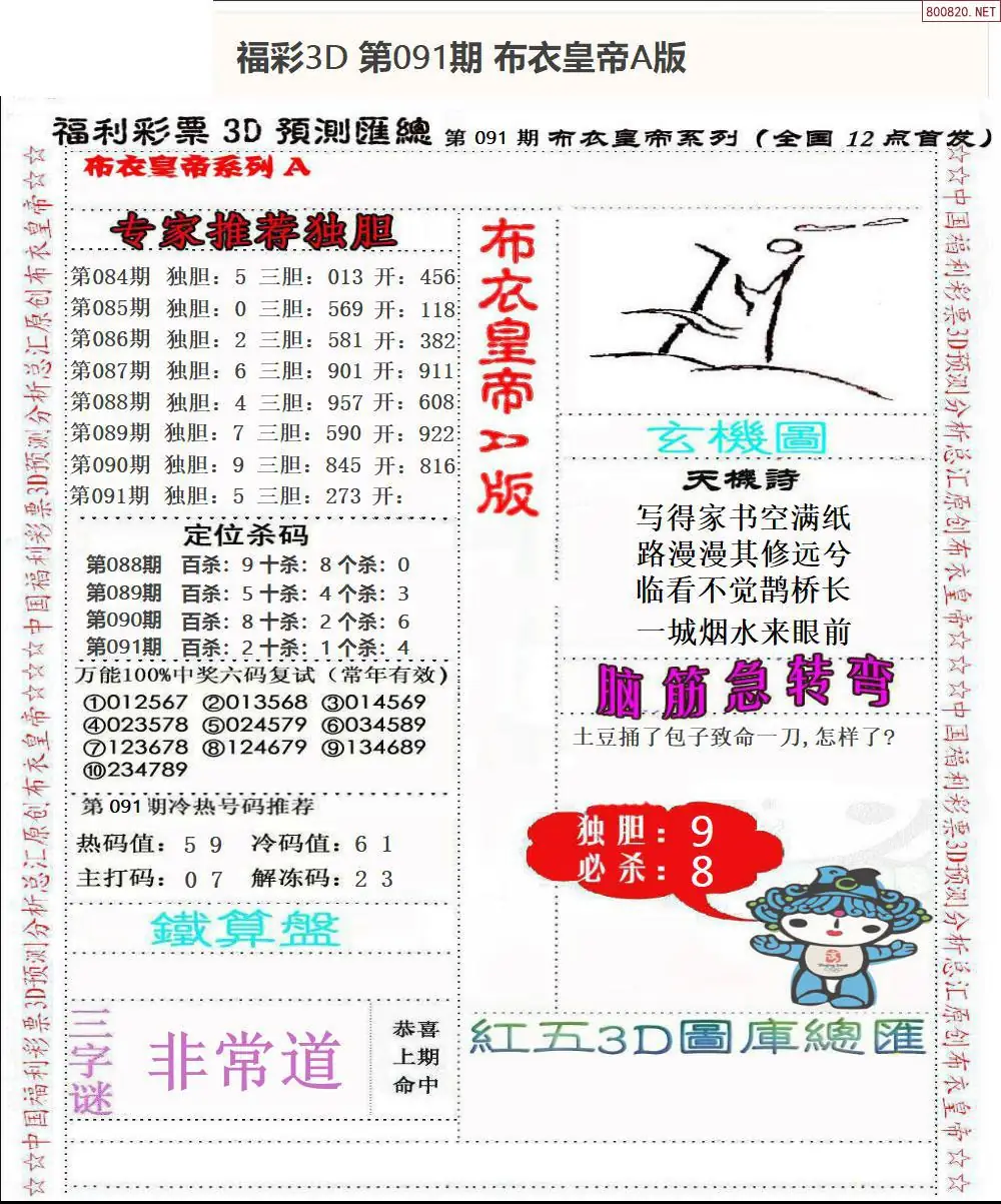 皇帝图26091期布衣皇帝+老夫子布衣3d图谜