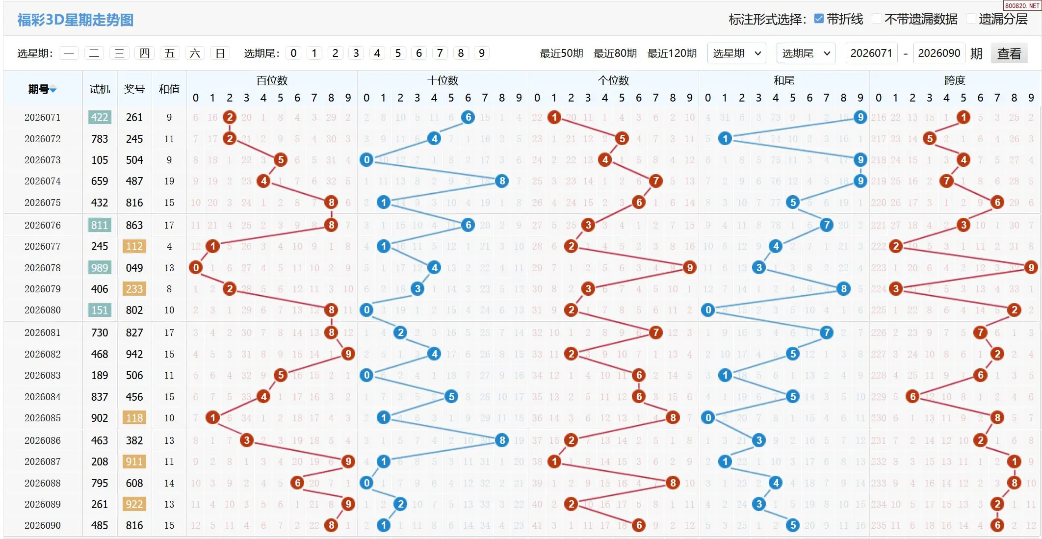 26年091期[紫月忧蓝]福彩3D本期形态关注