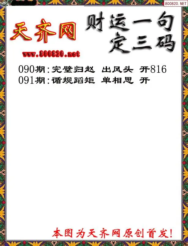 091期财运3D一句定三码字图谜