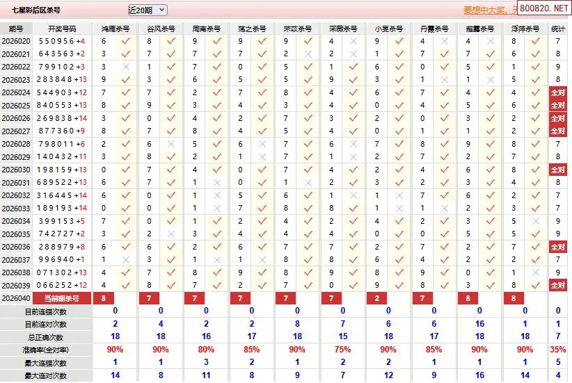 14 澳客七星彩040期十大专家杀一位
