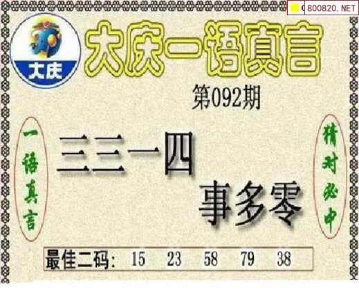 大庆图26092期大庆五码+一语真言黑胆3d图谜