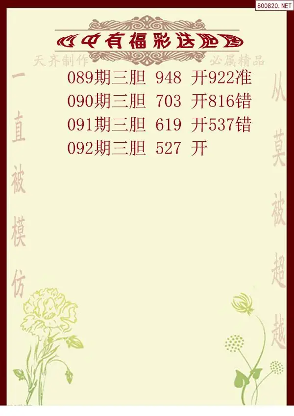 2026年092期心中有福福彩送胆图谜(天齐网原创)