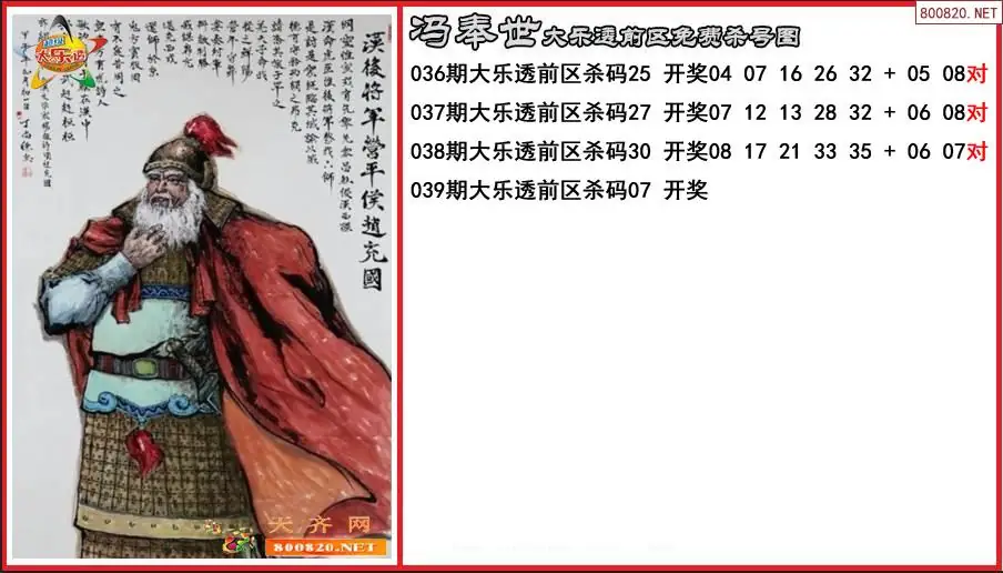 冯奉世2026039期大乐透前区免费杀号图-原创