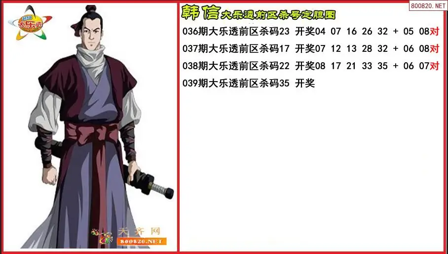 韩信2026039期大乐透前区杀号定胆图-原创