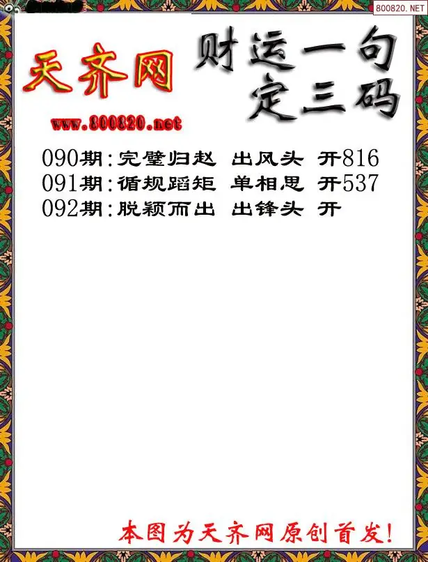 092期财运3D一句定三码字图谜
