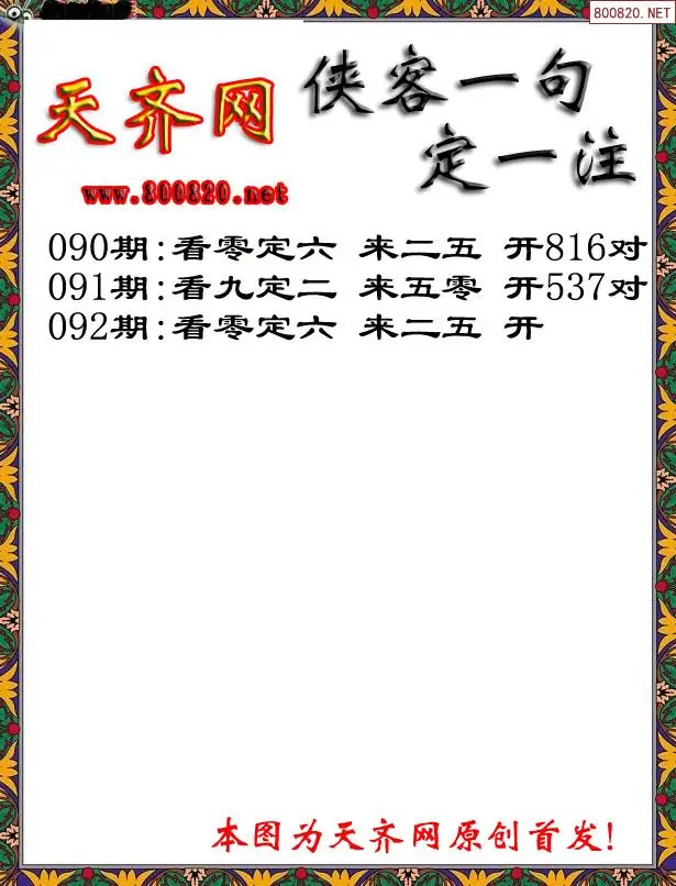 092期侠客一句3D定三码字图谜