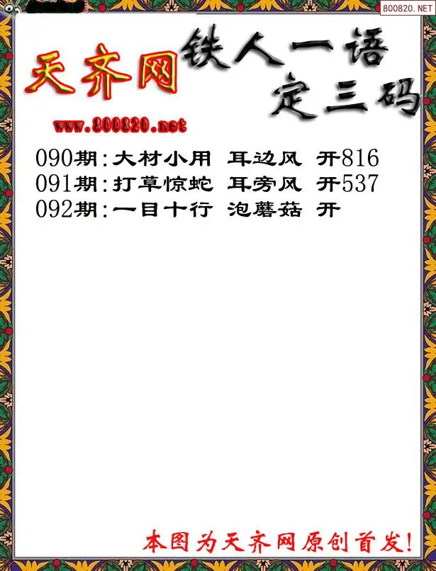 092期3D铁人一句定三码字图谜