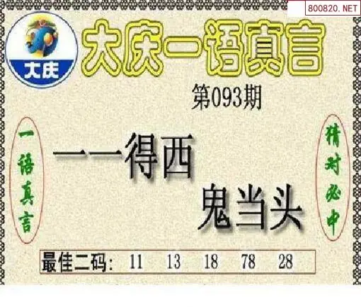 大庆图26093期大庆五码+一语真言黑胆3d图谜