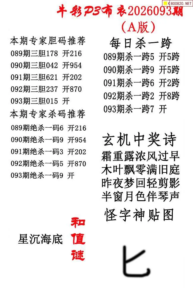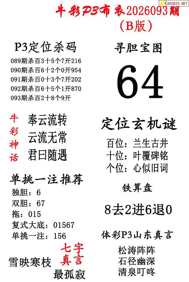 牛彩体彩P3布衣2026年093期AB版图谜(精华版)