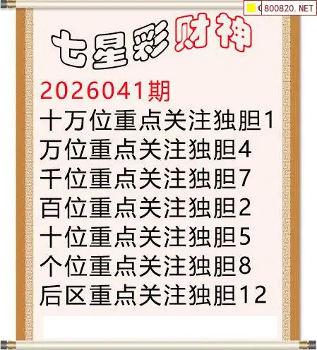 8 2026年老酒鬼040期七星彩胆码推测
