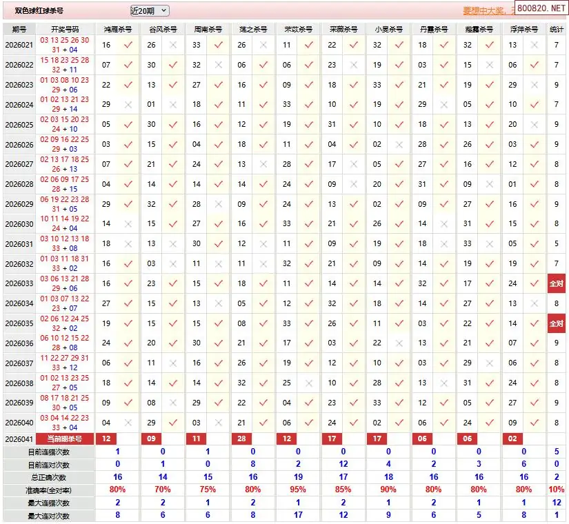 20 福彩双色球2026041期[金丝猴]杀一