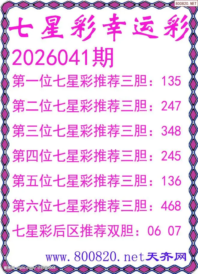 幸运彩26年041期七星彩杀号图谜