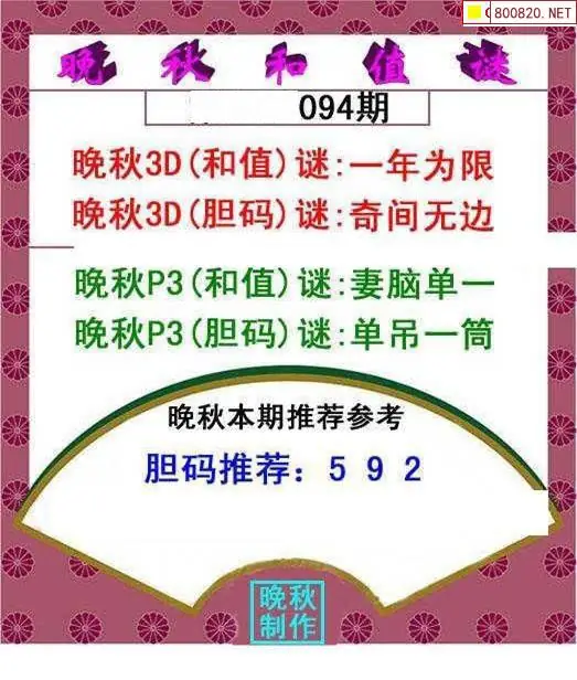 晚秋图26094期3d晚秋和值迷图谜版