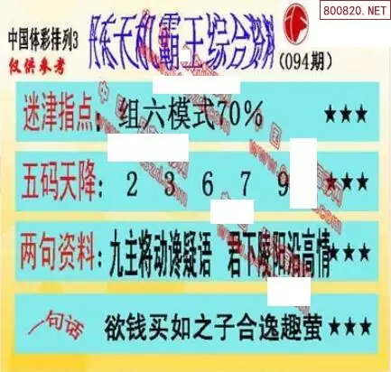 小军网摘26年094期体彩P3彩报