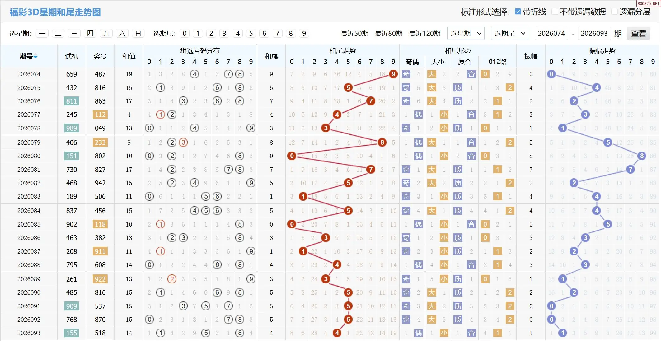 胆拖 胆码:0,拖码:2,3,4,7,8