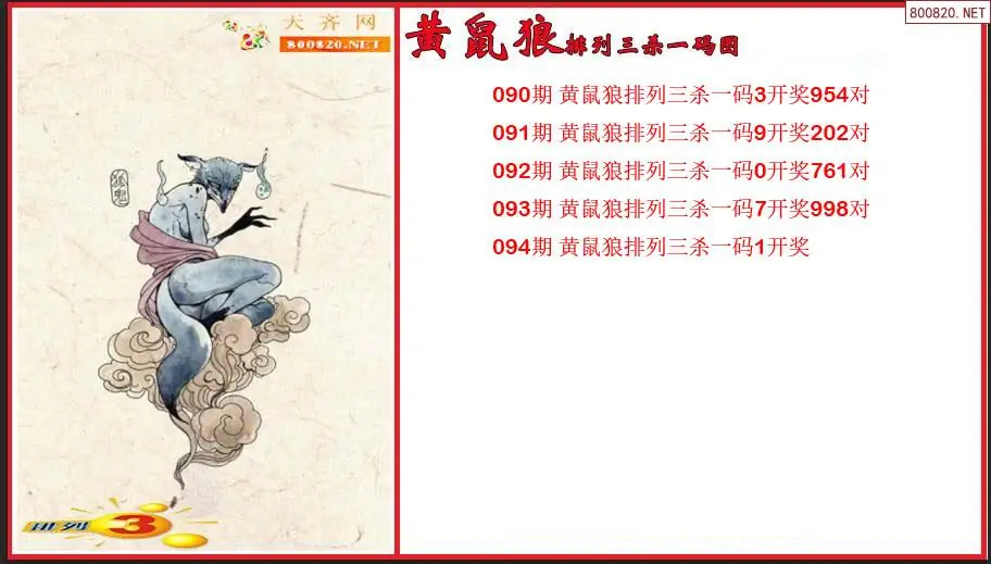 排列3第2026094期黄鼠狼杀一码图(原创)