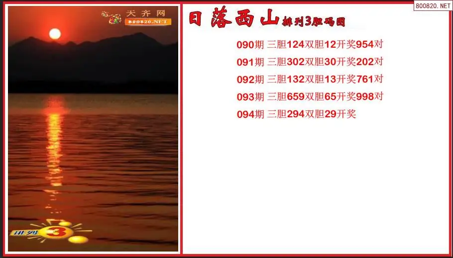 日落西山2026094期排列3胆码图谜(原创)