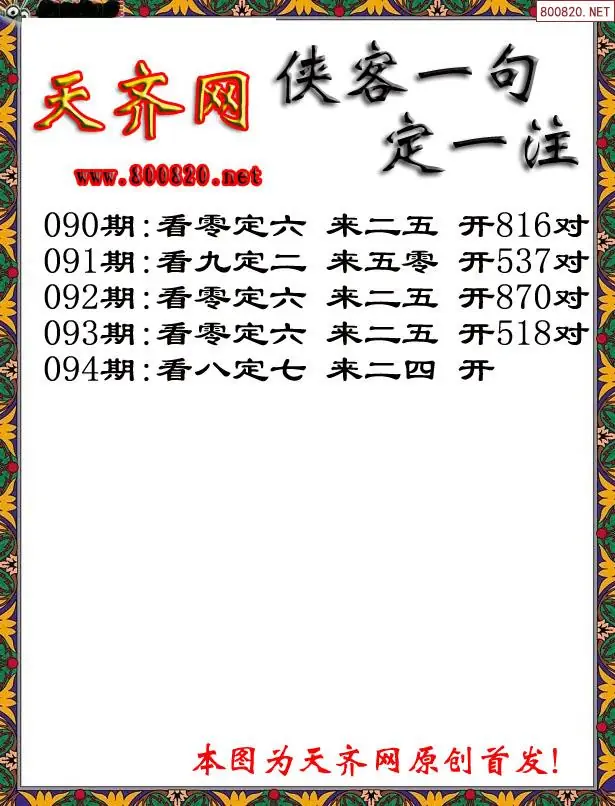 26 钱庄报26094期钱庄快报一句定三码