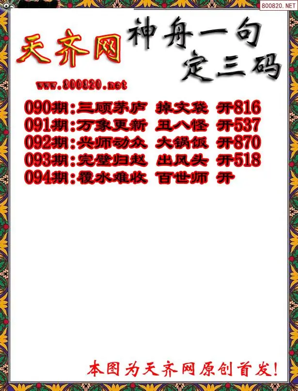 20 26年095期天齐网3d一句定三码(原创