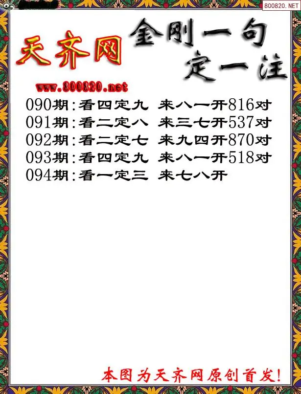 094期3D福彩金刚一句定三码字图谜
