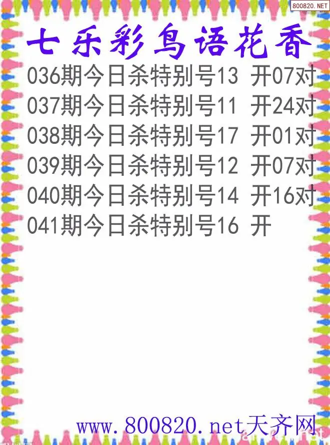 鸟语花香26年041期七乐彩杀号图谜