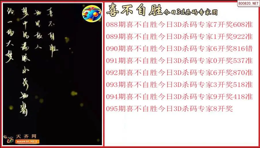 喜不自胜2026095期今日3d杀码专家图(原创)