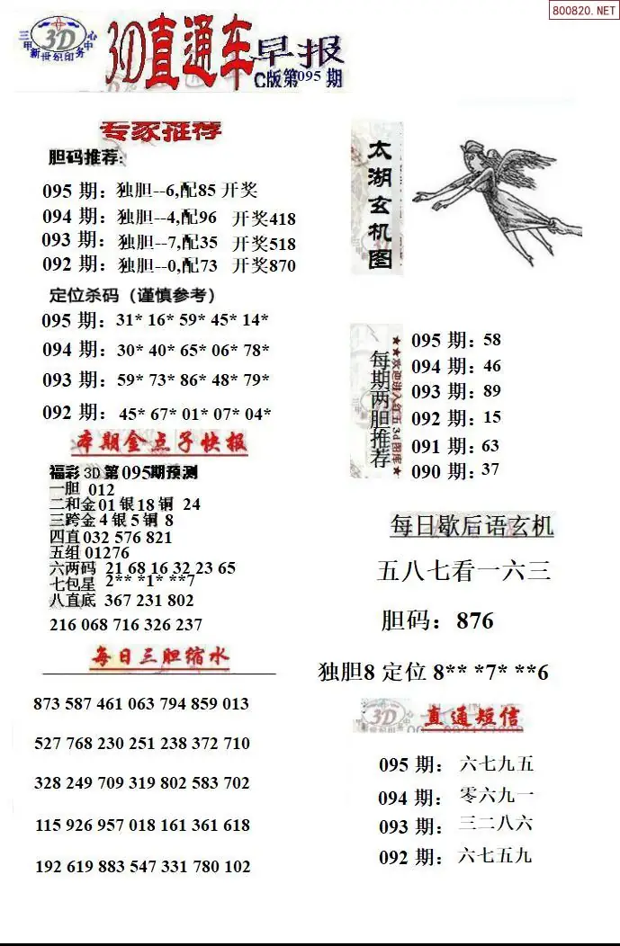 26年095期福彩3D直通车早报ABCD版
