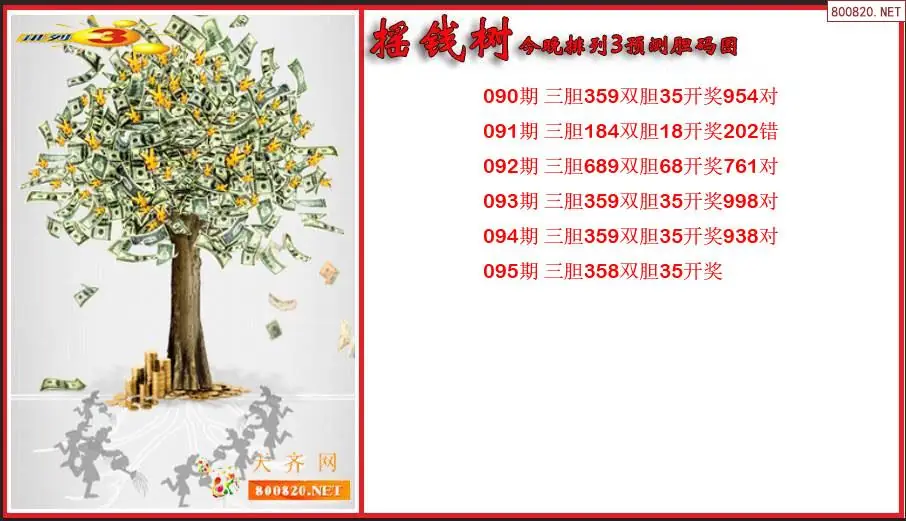 2026年摇钱树095期今晚排列3预测胆码图 (原创)